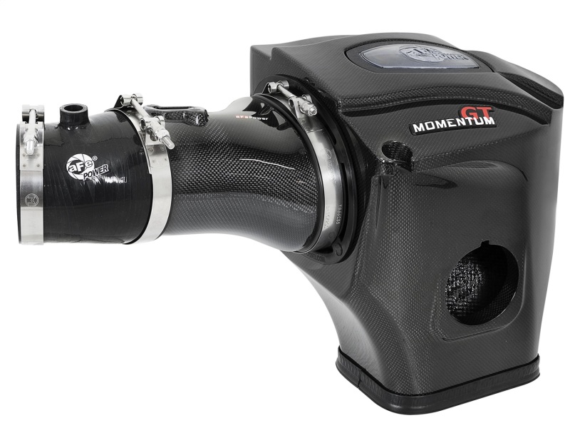 This Momentum intake system was designed around the largest filter possible to allow maximum performance and filtration. This cone filter has a massive (6.75″ x 4.75″) oval flange and is 8-1/2″ tall. The system comes with both a Pro DRY S and Pro 5R performance air filter. The simple yet elegant design of the one-piece sealed housing makes installation a snap and features our (Patent Pending) filter-to-housing interface. A large clear sight window allows for filter inspection without removal of the airbox. The housing is made out of lightweight high gloss, clear-coated plain weave carbon fiber and mounts directly into the factory headlamp cold air inlet location on the driver side to capture the coolest air available from the factory intake tract. Momentum intakes are designed with fewer parts for a quick and simple installation.
