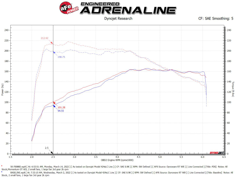 This aFe POWER Pro DRY S air filter is a 7-1/2” tall, oil-free, 360-degree conical flow performance air filter with three layers of synthetic media for maximum convenience. Its progressive layering provides great filtration efficiency and dust holding capacity, while not requiring the use of oils. This media is best suited for street and light off-road use. The sealed XLPE polymer housing features a sleek design, as well as a clear sight window, allowing for hassle-free filter inspection. aFe POWER’s patent pending filter-to-housing interface eliminates the use of an overabundance of parts, further simplifying the installation process. The housing utilizes the factory air inlet, using no additional hardware, and features an optional auxiliary air inlet that pulls in additional air. This system features a high quality, computer-designed, dyno-tuned intake tube to receive the factory mass airflow cartridge and achieve maximum power gains while maintaining a perfect fit. The XLPE material is heat soak resistant and extremely durable. A silicone coupling at the turbo inlet allows for flexibility while maintaining durability and a perfect fit. The computer designed system utilizes factory mounting locations, minimizing the use of unnecessary hardware and ensuring a perfect fit every time. Its innovative design makes for a hassle-free, direct bolt-on installation process that requires no cutting or drilling. Its revolutionary design, featuring our patent pending filter-to-housing interface, uses half the number of parts of a traditional cold air intake system.