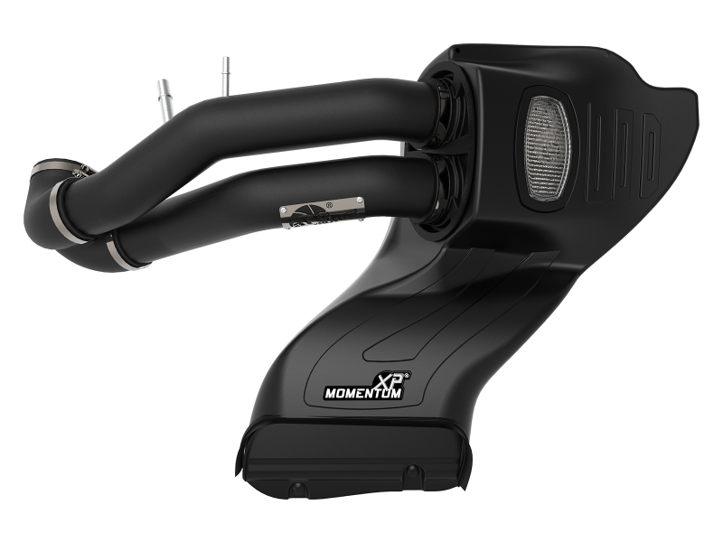 One-Piece Housing with Sight Window:A custom computer designed housing eliminates the use of multiple components. It’s roto-molded and made from heat soak resistant cross-linked polyethylene, ensuring the coolest air intake charge possible. A clear sight window allows for filter inspection without removal of the airbox. The housing is designed to retain the same stock mounting points as the OE intake system for a hassle-free installation.Dual Inlet Large 3-Layer Performance Air Filter:This sealed intake system utilizes a radial flow performance air filter with three oil-free progressive synthetic media layers for maximum convenience. The unique filter-to-housing interface allows for maximum filter size which increases the available air volume while simplifying the installation process.Dual 3″ Mandrel-Bent Tubes w/ Custom Silicone Coupling:Dual mandrel-bent wrinkle-black powder-coated aluminum intake tubes direct unrestricted airflow from the filter to the throttle body for more horsepower and torque. A custom reinforced silicone coupling merges the dual tubes into a single outlet to connect to the throttle body.Premium Hardware:Premium stainless-steel worm-gear clamps provide the best corrosion resistance possible. Momentum XP intakes are designed with fewer parts for a quick and simple installation.