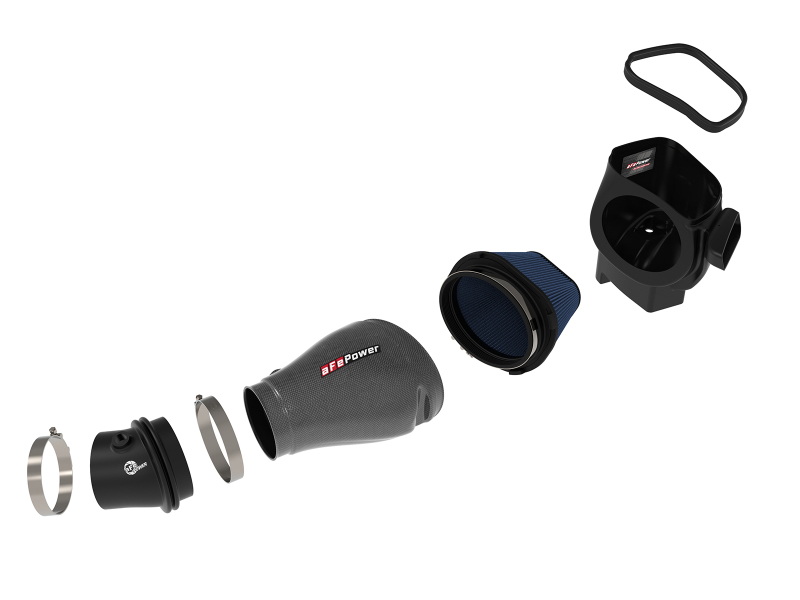 This 7” tall 360-degree radial flow air filter features a 5-1/2″ by 7-1/2″ flange and our pre-oiled Pro 5R media with five layers of progressively finer cotton gauze media for maximum performance. It provides your engine with the largest amount of high-flowing air and delivers the highest power gains in most cases. This media is perfect for street and/or track use. The included massive air filter is surrounded by an open-element XLPE (cross-linked polyethylene) polymer housing that minimizes warm engine air for maximum performance. Its open design allows for easy viewing of the air filter and delivers an aggressive Air Intake sound. Multiple air inlets bring in cool air when under power without capturing any warm air surrounding the engine. The lightweight tube is computer-designed to achieve maximum power gains while maintaining a perfect fit. Manufactured from 100% twill weave carbon fiber, it features zero fiberglass and is clear-coated for the highest quality construction. This is a direct fit intake system that utilizes factory mounting points and requires no cutting or modifications. All necessary stainless-steel clamps, silicone coupling, and hardware are included. Its revolutionary design, featuring our patent pending filter-to-housing interface, uses half the number of parts of a traditional cold air intake system.