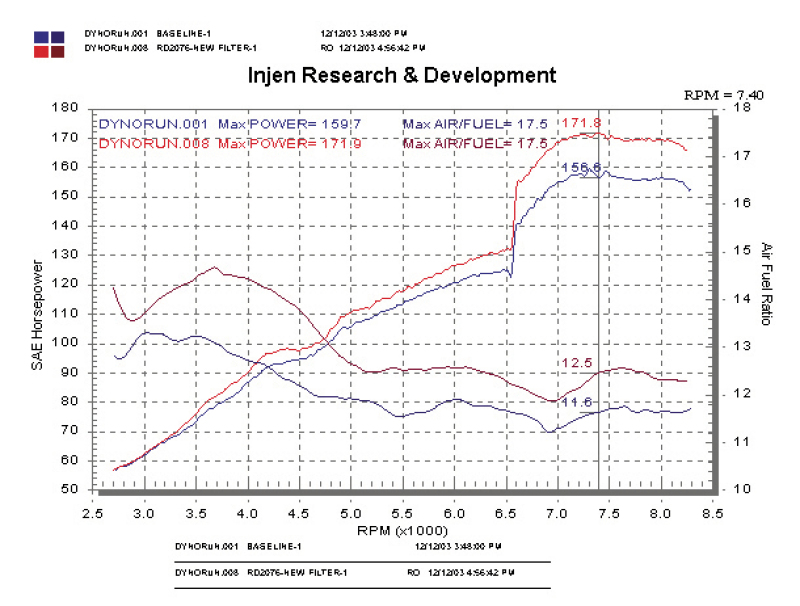 Add some easy horsepower to your Ride with this RD Series Performance cold air intake (CAI) from Injen Technology! The engineers at Injen have spent considerable amounts of time designing, testing, and perfecting this CAI to produce some serious bolt-on power while also providing amazing engine bay aesthetics. In addition to the impressive power increase, the Injen team has ensured that safe Air fuel (A/F) ratios are maintained throughout the powerband. , , The soul of this intake is found within our mandrel-bent 6061-T6 aluminum air intake tube that provides a smooth uninterrupted path for highly efficient airflow. This tube reaches into the depths of the engine bay to collect the coolest and densest air available. Additionally, this RD intake also includes a fully serviceable Injen SuperNano-Web dry air filter, which provides increased filter surface area allowing for greater airflow and unbeatable filtration. If that’s not enough, the Injen RD performance intake provides power you can hear and feel! This intake provides an aggressive and throaty tone that is unmatched in the aftermarket. Want to add that personalized touch to your intake? Injen also offers this intake system in a polished or a powder-coated Black finish. To top it all off, this RD CAI kit includes the unbeatable Injen Technology limited Lifetime Warranty!,