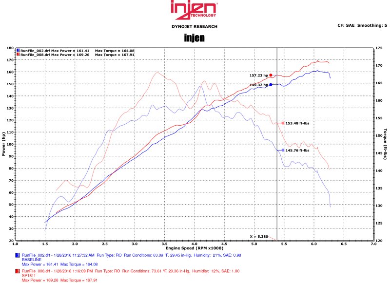 Is your engine choking for air and in need of some additional horsepower? If so, Injen has exciting news for you! The SP series of cold air intakes from Injen Technology will allow your engine to breathe deeper and enhance the performance that you’ve been craving. The SP series of cold air intakes is Injen’s flagship system in their lines of traditional aluminum cold air intake systems. Injen Technology is the world’s first tuned air intake system and holds four (4) patents on the tuning process of an intake system ? something no other manufacturer can claim. The SP series of cold air intakes feature many of Injen Technology’s patented tuning process, including MegaRam (MR) Technology (Patents 7,359,795 and 7,669,571), Air Fusion (Patents 7,757,548 and 7,721,699), and many other innovations that keep Injen Technology at the forefront in the performance aftermarket. , , The soul of this intake is found within 6061-T6 aluminum air intake tube that provides a smooth uninterrupted path for highly efficient airflow. Our engineers have painstakingly designed the intake to provide the highest levels of safe power, along with clean aesthetics that will impress every time you open your hood. In addition to the impressive power increase, the Injen team has ensured that a safe Air fuel (A/F) ratio has been maintained throughout the power band. , , Additionally, this SP intake includes a fully serviceable Injen SuperNano-Web dry air filter, which provides increased filter surface area allowing for greater airflow and unbeatable filtration. If that’s not enough, the Injen SP performance intake provides power you can hear and feel! This intake provides an aggressive and throaty tone that is unmatched in the aftermarket. Want to add that personalized touch to your intake? You’re in luck, as Injen also offers this intake system in multiple finishes. To top it all off, this SP CAI kit includes the unbeatable Injen Technology limited Lifetime Warranty!
