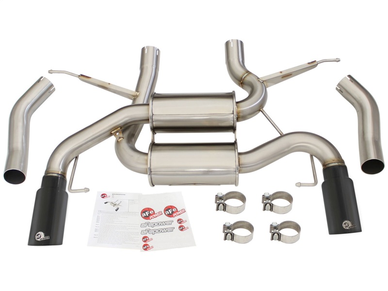 aFe introduces the MACH Force XP dual axle-back exhaust system for the 11-14 Mustang GT V8-5.0L. In recent testing this system produced 18 horsepower and 15 lbs. x ft. of torque. This exhaust is constructed from 3 in. mandrel-bent, stainless steel and is MIG-welded. The system uses high-flow, stainless steel mufflers which improves performance across the power band while maintaining a great tone. To finish off this exhaust are dual, gloss black, 4 in. double wall, 304 stainless steel aFe laser etched tips. This exhaust uses all factory hanger locations for a hassle-free installation. No modifications necessary. All aFe exhaust systems are engineered and manufactured in our Corona, California manufacturing facility.