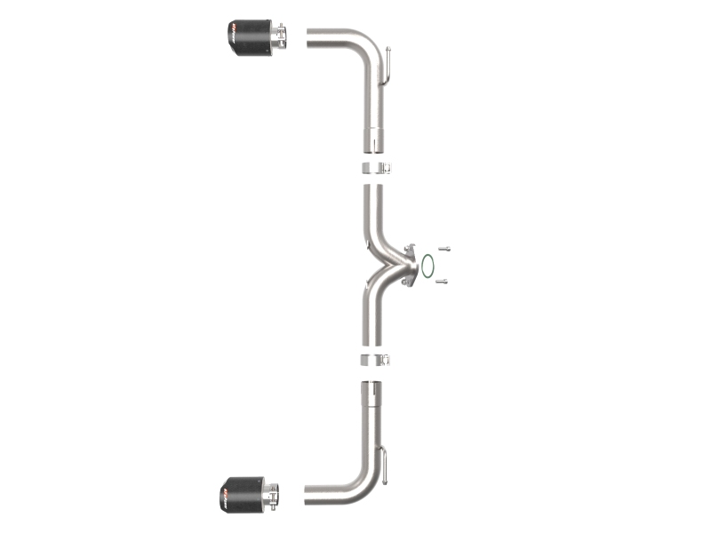 This system produced gains of up to +6.45 HP and +8.12 lbs. x Ft. TQ., as measured on our in-house dyno. This axle-back exhaust system is constructed of 2-1/2″ mandrel-bent 304 stainless steel tubing for maximum strength and durability. Finishing off this exhaust system are dual 4-1/2″ diameter carbon fiber 304 stainless steel clamp-on exhaust tips. The tips features a laser etched aFe POWER logo for a unique style. This system produces a deep sound unleashing all available horsepower and torque. Utilizing a factory style flange and hangers this system is a direct bolt-on system, which requires no cutting or modifications for a hassle-free installation. A mitered merge collector is used to decrease turbulence and increase exhaust velocity resulting in increased horsepower, torque and improved throttle response. Utilizing state-of-the-art computer-aided design technology, this exhaust system is designed for custom, high tolerance factory fitment. 100% MIG-Welded for race-proven strength and durability.