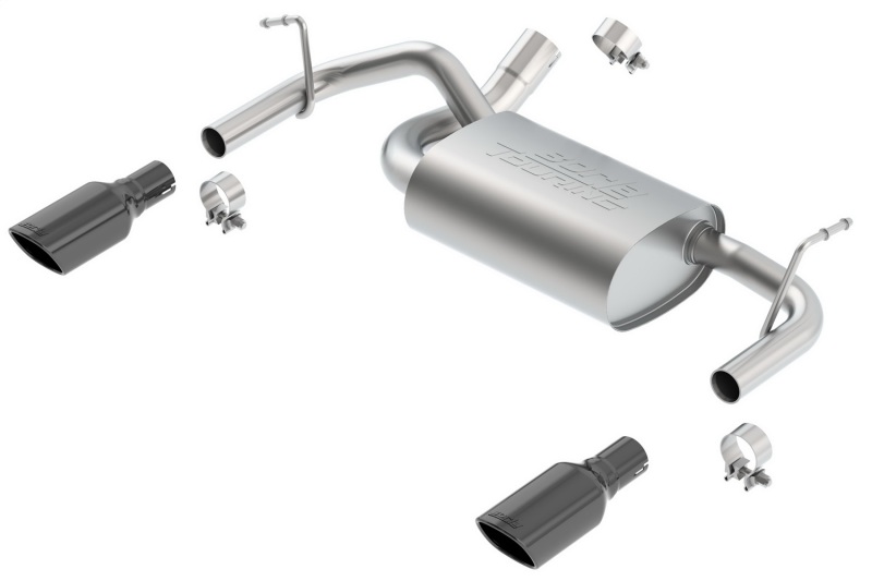 This 2.5″ diameter into dual 2″ Cat-Back™ system delivers the mellow Touring sound with no drone inside the vehicle The system features single 3.5″ X 3.28″ ‘square’ black chrome finish on T-304 stainless steel tips on each tail pipe. Using BORLA® Stainless Steel Polish p# 21461 is not recommended with these black chrome tips. We suggest cleaning the tips with hot water and a microfiber cloth. BORLA® Cat-Back™ & Axle-back exhaust systems feature patented straight-through and multi-core technology designed to unleash hidden horsepower. Increased exhaust velocity adds power, driving excitement, fuel economy, and the distinctive BORLA® Sound of Power respected by motoring enthusiasts everywhere. Each system is built from premium T-304 stainless steel, superior to T-400 series knockoffs (such as 409), to give you the absolute best in performance and durability. Ultra-smooth mandrel bends ensure maximum flow & power, and precision computer numerical control (CNC) manufacturing ensures an accurate fit. Best of all, BORLA® stands behind every system with a Million-Mile Warranty. Just what you’d expect from the world’s most experienced (and most winning) exhaust brand.