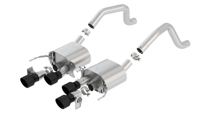 This Axle-Back system does NOT have AFM valves but is equipped with NPP valves. This system features the aggressive ATAK(r) sound and exits through durable high-temperature ceramic black finish on 4.25″ intercooled T-304 stainless steel tips. Systems with polished T-304 stainless steel tips and carbon fiber tips are also available. Borla(r) Cat-Back(tm) & Axle-Back exhaust systems feature patented straight-through and multi-core technology to unleash hidden horsepower. Increased exhaust velocity adds power, driving excitement, fuel economy, and the distinctive Borla(r) Sound of Power respected by motoring enthusiasts everywhere. Each system is built from premium T-304 austenitic stainless steel, superior to T-400 series knockoffs (such as 409), to give you the absolute best in performance and durability. Ultra-smooth mandrel bends ensure maximum flow & power, and precision computer numerical control (CNC) manufacturing ensures an accurate fit. Borla(r)’s C7 Corvette Axle-Back exhaust systems are covered under our Million-Mile Warranty for non-moving parts, the exhaust valves are warrantied for 1 year. Failures of original equipment AFM and NPP actuators are not covered by the Borla(r) warranty