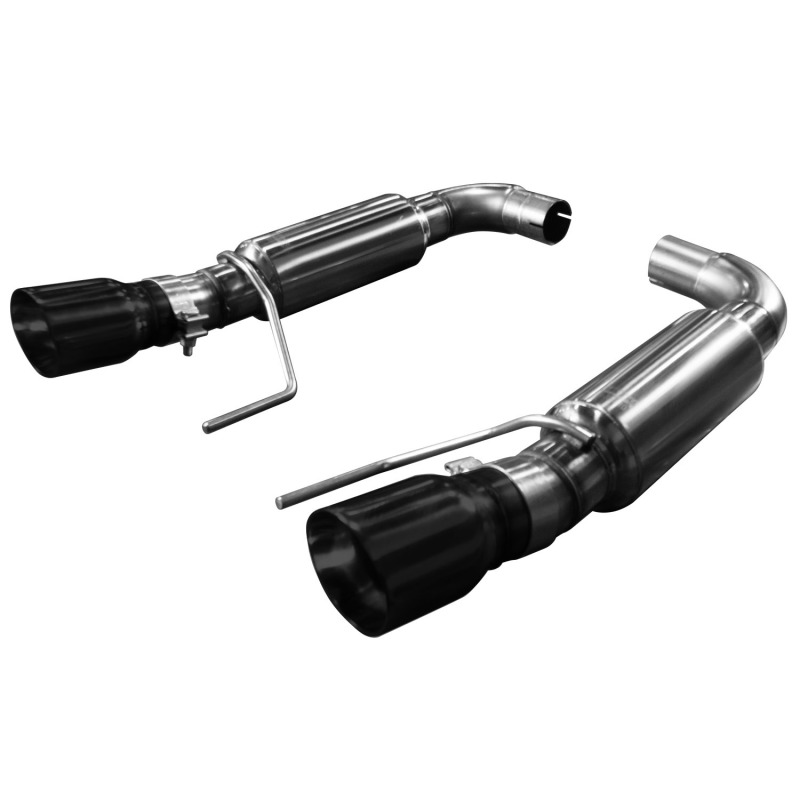 2-1/2in. x 3in. Axle-Back Exhaust. 2015-2017 Mustang GT 5.0L 4V. 3in. Mandrel Bent 304 Stainless Steel Tubing. Includes 3in. Stainless Round Mufflers and 4in. Slash Cut Black Coated Tips. Connects to OEM Exhaust. Factory Exhaust Must be Cut for Installation.
