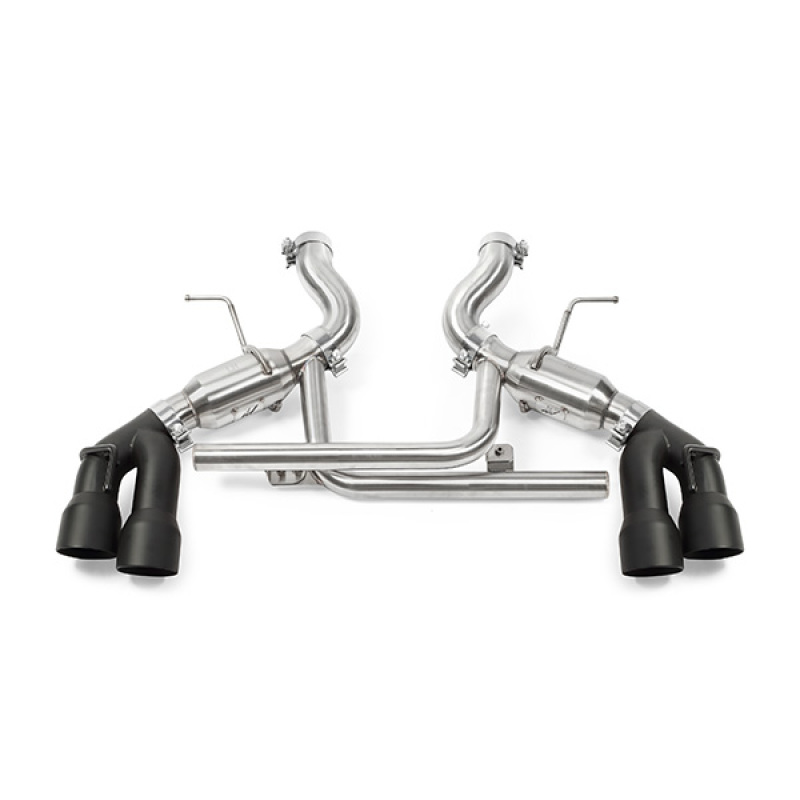 Add some extra growl to go along with the grunt of your LT1 powered 2016-2024 Camaro SS with the Mishimoto quad-tip Pro Axleback Performance Exhaust system. While the stock exhaust system produces an adequate warble that goes along with Chevy?s 6.2L V8, the standard suitcase muffler cuts the volume, and adds extra weight to your Camaro.The Mishimoto Pro Axleback system replaces the standard factory suitcase muffler with two high-flowing mufflers putting that extra punch back into your Camaro?s exhaust tone. These mufflers are equipped with Helmholtz resonators meaning that the extra volume doesn?t come at the cost of deafening highway drone. The Mishimoto quad-tip Pro Axleback Performance Exhaust system is constructed from 304 stainless steel and is available with the option of polished or black tips. As always, this kit also includes the Mishimoto Lifetime Warranty.