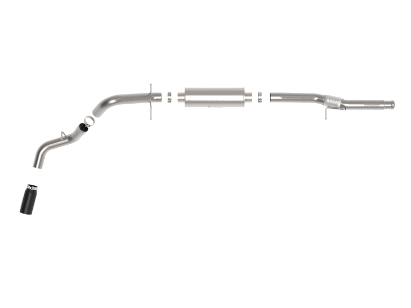 5″ Diameter Black Intercooled Exhaust Tip: Finishing off this exhaust system is a 5″ diameter black 409 stainless steel intercooled clamp-on exhaust tip. The tip features an aFe POWER logo plate riveted on for a unique style.