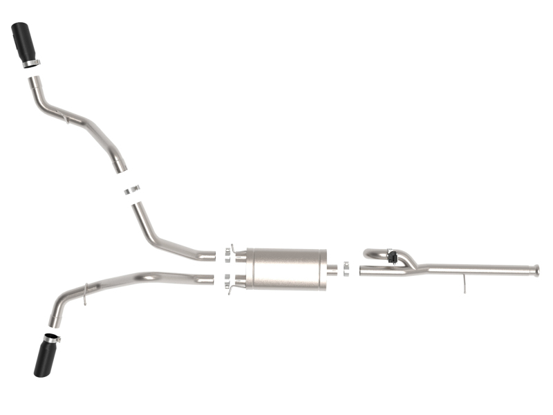 This cat-back exhaust system is constructed of 3 IN mandrel-bent 304 stainless steel tubing for maximum strength and durability. This system features a high-flow stainless steel, producing an aggressive sound. Muffler finish may vary. Finishing off this exhaust system are dual 4-1/2 IN diameter black 304 stainless steel clamp-on exhaust tips. The tips feature an aFe POWER logo plate riveted on for a unique style. Gemini XV exhaust features an electronically controlled exhaust cutout valve to quickly switch between mild and aggressive tones at the push of a button. This kit includes two key fob remotes, control module, valve motor, and all necessary wiring. It’s a simple installation, requiring no cutting of any wires or interference of the automobile’s electronics. Utilizing factory style hangers this system is a direct bolt-on system, which requires no cutting or modifications for a hassle-free installation. Utilizing state-of-the-art computer-aided design technology, this exhaust system is designed for custom, high tolerance factory fitment. 100% MIG-Welded for race-proven strength and durability.
