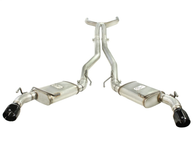 aFe is proud to announce the MACH Force XP cat-back exhaust system for the 2010-2013 Chevrolet Camaro with the V8-6.2L engine. In recent testing this system produced 22 horsepower and 26 lbs. x ft. of torque. This exhaust system is constructed from 3?, mandrel-bent, stainless steel and is MIG-welded. The system uses dual, high-flow mufflers with 3? tubing which improves performance across the power band while maintaining the true muscle car sound. aFe has incorporated an equalizer balance tube to evenly distribute exhaust pulses traveling through the exhaust system. This not only creates a more efficient flow and better performance, the equalizer balance tube also reduces decibels, minimizing exhaust drone. Included in this system are dual 4″, double wall, gloss black, 304 stainless steel, slash cut aFe laser-etched exhaust tips. This exhaust uses all factory hanger locations for a hassle-free installation. No modifications necessary.
