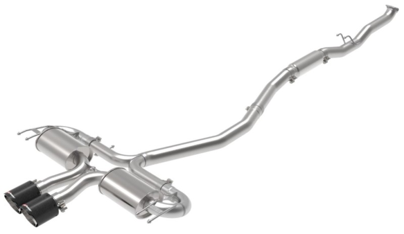 Dual 4-1/2″ Diameter Carbon Fiber Exhaust Tips: Finishing off this exhaust system are dual 4-1/2″ diameter carbon fiber 304 stainless steel clamp-on exhaust tips. The tips features an aFe POWER logo for a unique style.