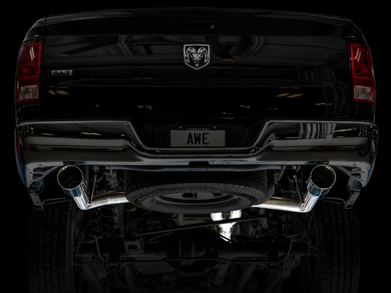AWE 0FG Dual Rear Exit Catback for 4th Gen RAM 1500 5.7L (without bumper cutouts) – Chrome Silver Tips