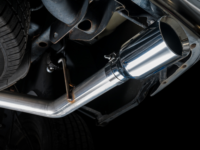 • Dual rear exit with 5” straight cut tips for flat bumpers (no cut-outs)