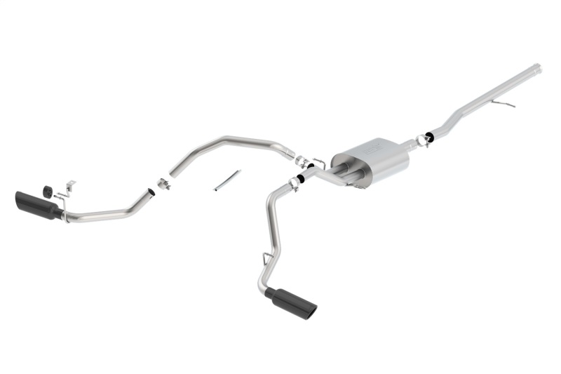 This system features a black chrome finish on T-304 stainless steel tips. Using Borla(r) Stainless Steel Polish p# 21461 is NOT recommended with these black chrome tips. We suggest cleaning the tips with hot water and a microfiber cloth. Borla(r) Cat-Back(tm) and Axle-Back exhaust systems feature patented straight-through and multi-core technology designed to unleash hidden horsepower. Increased exhaust velocity adds power, driving excitement, fuel economy, and the distinctive Borla(r) Sound of Power respected by motoring enthusiasts everywhere. Each system is built from premium T-304 stainless steel, superior to T-400 series knockoffs (such as 409), to give you the absolute best in performance and durability. Ultra-smooth mandrel bends ensure maximum flow & power, and precision computer-controlled CNC manufacturing ensures an accurate fit. Best of all, Borla(r) stands behind every system with a Million-Mile Warranty. Just what you’d expect from the world’s most experienced (and most winning) exhaust brand.