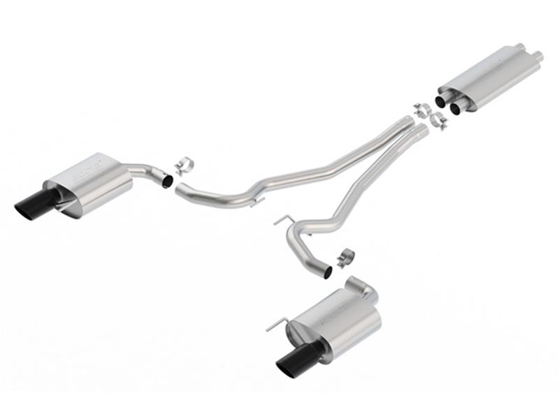EC-Type approved systems are those that comply with European Union rules for motor vehicles, vehicle systems and components. Front muffler/ resonator contains an internal H-Pipe for increased performance and improved performance. This system comes with 4″ bright chrome on T-304 stainless steel tips. Borla(r) Cat-Back(tm) & Axle-Back exhaust systems feature patented straight-through and multi-core technology to unleash hidden horsepower. Increased exhaust velocity adds power, driving excitement, fuel economy, and the distinctive Borla(r) Sound of Power respected by motoring enthusiasts everywhere. Each system is built from premium T-304 austenitic stainless steel, superior to T-400 series knockoffs (such as 409), to give you the absolute best in performance and durability. Ultra-smooth mandrel bends ensure maximum flow & power, and precision computer numerical control (CNC) manufacturing ensures an accurate fit. Best of all, Borla(r) stands behind every system with a Million-Mile in the USA and Canada (1.6 million kilometer). Products sold outside of the USA and Canada carry a 3-year limited warranty. Just what you’d expect from the world’s most experienced (and most winning) exhaust brand.