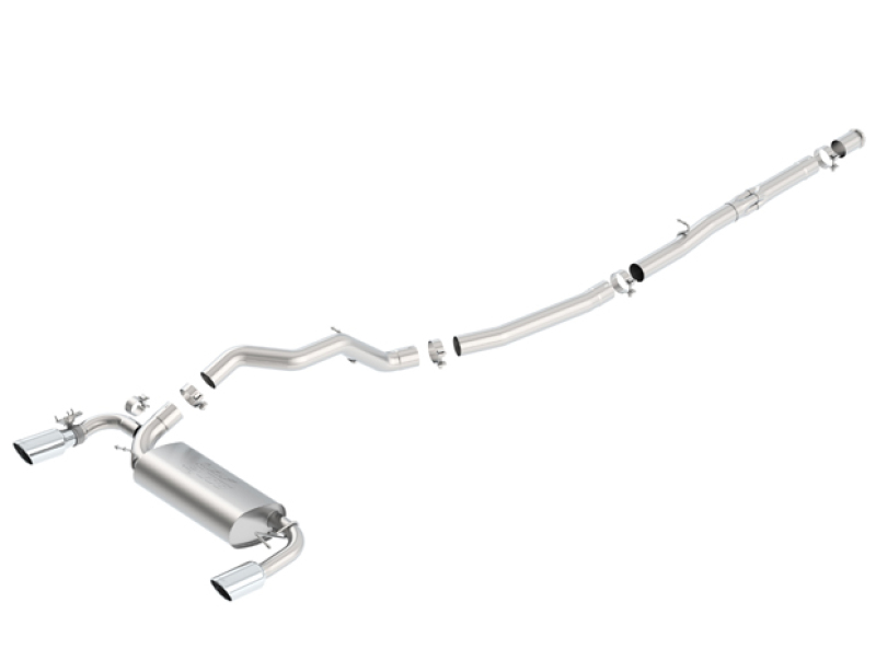 This system is equipped with a “Sound Suppressing Valve” simulator which ELIMINATES the valve. This avoids any warning lights on the dash while providing maximum flow at all times. System also features Boryla’s Polyphonic Harmonizer Technology which utilizes patented units that contain pipes of different diameters and lengths to create multiple exhaust notes that harmonize to deliver a clean, rich, full-bodied sound to the Borla(r) mufflers. The mufflers then enhance this sound to the character and volume appropriate for our Touring, S-Type and ATAK(r) systems. This system features bright chrome on T-304 stainless steel tips. Borla(r) Cat-Back(tm) & Axle-Back exhaust systems feature patented straight-through and multi-core technology to unleash hidden horsepower. Increased exhaust velocity adds power, driving excitement, fuel economy, and the distinctive Borla(r) Sound of Power respected by motoring enthusiasts everywhere. Each system is built from premium T-304 austenitic stainless steel, superior to T-400 series knockoffs (such as 409), to give you the absolute best in performance and durability. Ultra-smooth mandrel bends ensure maximum flow & power, and precision computer-controlled CNC manufacturing ensures an accurate fit. Best of all, Borla(r) stands behind every system with a Million-Mile Warranty. Just what you’d expect from the world’s most experienced (and most winning) exhaust brand.