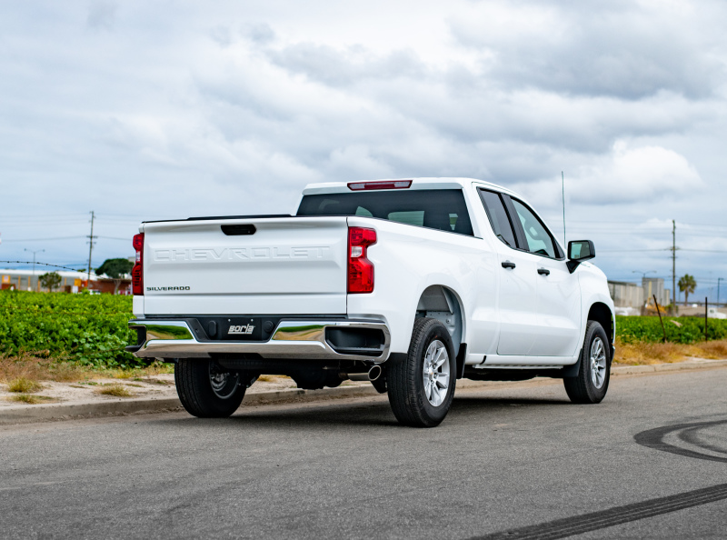 Factory Single Side Exit vehicles ONLY. Add Adapter 60708 for Crew Cab with Standard Bed (6′ 7″) 157″ Wheelbase vehicles. The 3″ diameter Borla(r) Cat-Back(tm) system is a side exit system featuring the mellow Touring sound level with no drone inside the vehicle, and a 4″ round bright chrome on T-304 stainless steel tip. A system with black chrome on T-304 stainless steel tip is also available. Borla(r) Cat-Back(tm) and Axle-Back exhaust systems feature patented straight-through and multi-core technology designed to unleash hidden horsepower. Increased exhaust velocity adds power, driving excitement, fuel economy, and the distinctive Borla(r) Sound of Power respected by motoring enthusiasts everywhere. Each system is built from premium, high-quality T-304 austenitic stainless steel, superior to T-400 to give you the absolute best in performance and durability. Ultra-smooth mandrel bends ensure maximum flow & power, and precision CNC manufacturing ensures an accurate fit. Give your Silverado or Sierra the power and sound it deserves, bolt on a Borla(r). You can count on Borla(r) to provide durability, performance, sound, and a Million-Mile Warranty.