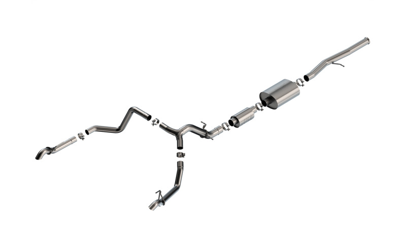 This system was designed specifically for the 6.2L Silverado 1500 ZR2 and Sierra 1500 AT4X . The 3.5″ diameter Cat-Back(tm) system has dual 2.75″ turn down tail pipes and features the classic Borla(r) S-Type sound level with no drone inside the vehicle. Replace the small muffler behind the primary muffler in the Borla(r) “S-Type” system with Polyphonic Harmonizer 60680 to attain the “ATAK(r)” sound level (louder than “S-Type”). Optional “True Dual” Cat-Back(tm) system available. Borla(r) Cat-Back(tm) & Axle-Back exhaust systems feature patented straight-through and multi-core technology to unleash hidden horsepower. Increased exhaust velocity adds power, driving excitement, fuel economy, and the distinctive Borla(r) Sound of Power respected by motoring enthusiasts everywhere. Each system is built from premium T-304 austenitic stainless steel, superior to T-400 series knockoffs (such as 409), to give you the absolute best in performance and durability. Ultra-smooth mandrel bends ensure maximum flow & power, and precision computer numerical control (CNC) manufacturing ensures an accurate fit. Give your ZR2 or AT4X the sound it deserves, bolt on a Borla(r). Best of all, Borla(r) stands behind every system with a Million-Mile Warranty. Just what you’d expect from the world’s most experienced (and most winning) exhaust brand.