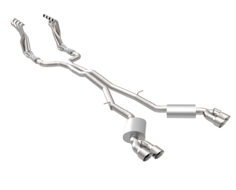 2016-2024 Chevrolet Camaro SS LT1 6.2L 1-7/8in. x 3in. Stainless Steel Long Tube Headers/3in. Catted Header back exhaust Kit. All 304 Stainless Mandrel Bent Tubing. 3in. Catted Connection Pipes; X-Pipe; Kooks Oval Race Mufflers and Quad 4in. Polished Slash Cut Tips. STANDARD RACE CATS NOT FOR USE IN FORCED INDUCTION APPLICATIONS