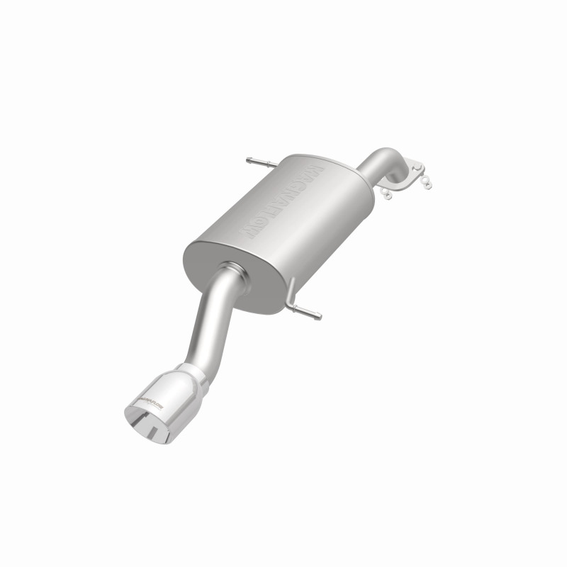 The MagnaFlow 2011-2014 Mazda 2 Street Series Axle-Back Performance Exhaust System 15555 brings enhanced engine sound and dyno-proven performance to your 1.5L 2011-2014 Mazda 2 with a healthy helping of our deep, resonant signature exhaust note at Moderate exterior and Mild interior sound levels. Thanks to its durable, corrosion resistant stainless steel design, this Mazda 2 exhaust system will handle whatever tarmac you decide to leave your mark on. This performance exhaust kit features an axle-back layout designed to replace your Mazda 2’s exhaust system from near the rear axle on back. With its fast-flowing, mandrel bent 2.25in. main piping and 1 Straight-Through mufflers ending in a Single Straight Passenger Side Rear exit with 3.5in. Polished Welded-On Double Wall Angle Cut Folded Edge tips, your ride will be sounding as awesome as it looks. Extensive 3D scanning during development has resulted in a direct-fit design that you can easily install yourself. 15555 is produced using CNC precision robotic manufacturing techniques and is backed by MagnaFlow’s 1-year limited finish warranty and limited lifetime construction warranty.