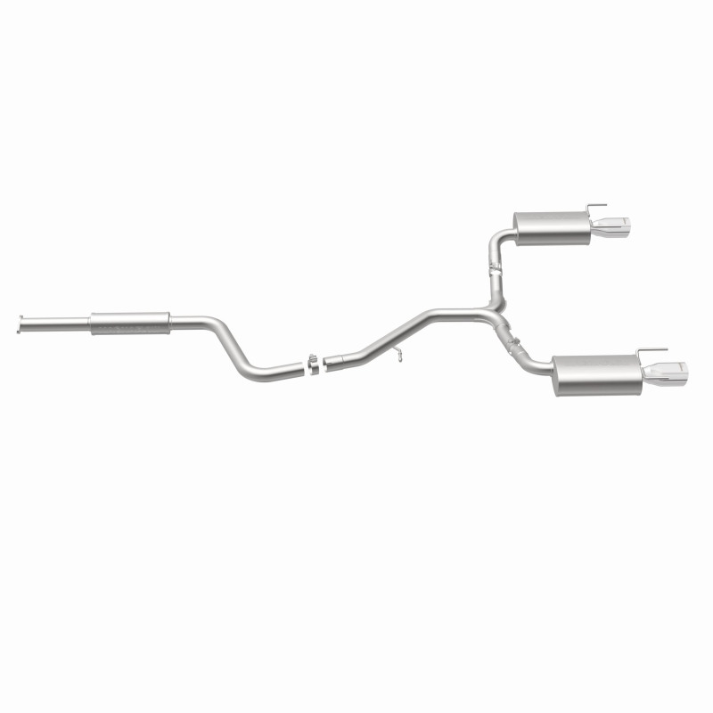 The MagnaFlow 2011-2017 Buick Regal Street Series Cat-Back Performance Exhaust System 15498 brings out the personality of your 2.0L 2011-2017 Buick Regal with our signature resonant, powerful engine tone and dyno-proven performance. Thanks to its fast-flowing, mandrel bent 2.5in. main piping and 3 Straight-Through mufflers ending in a Dual Split Rear exit with 3.5 x 5.5in. Polished Welded-On Double Wall Straight Cut Rolled Edge tips, this Buick Regal exhaust kit has the performance chops to match its sporty sound and appearance. Upgrade your ride to the next level with an exhaust that has the pipes to put other Buick Regal’s to shame. With this system your vehicle will be producing Moderate exterior and Mild interior sound levels while leaving other cars and trucks feeling envious at every stoplight. Exhaust kit 15498 features a cat-back layout that replaces your ride’s stock exhaust components from near the catalytic converter on back. Extensive 3D scanning during development has resulted in a direct-fit design that you can easily install yourself. 15498 is produced using CNC precision robotic manufacturing techniques and is backed by MagnaFlow’s 1-year limited finish warranty and limited lifetime construction warranty.