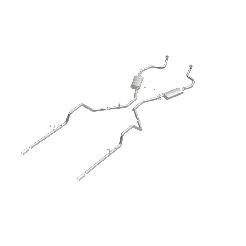 The MagnaFlow 1961-1964 Chevrolet Impala Street Series Crossmember-Back Performance Exhaust System 16724 brings enhanced engine sound and dyno-proven performance to your 3.8L, 4.6L, 5.3L, 5.4L, 5.7L, 6.7L, 7.0L 1961-1964 Chevrolet Impala with a healthy helping of our deep, resonant signature exhaust note at Moderate exterior and Mild interior sound levels. Thanks to its durable, corrosion resistant stainless steel design, this Chevrolet Impala exhaust system will handle whatever tarmac you decide to leave your mark on. This performance exhaust kit features a crossmember-back layout designed to replace your Chevrolet Impala’s exhaust system from the crossmember on back. With its fast-flowing, mandrel bent 2.5in. main piping and 2 Straight-Through mufflers ending in a Dual Split Rear exit with 3in. Polished Welded-On Single Wall Angle Cut Rolled Edge tips, your muscle car will be sounding as awesome as it looks. Extensive 3D scanning during development has resulted in a direct-fit design that you can easily install yourself. 16724 is produced using CNC precision robotic manufacturing techniques and is backed by MagnaFlow’s limited lifetime construction warranty.