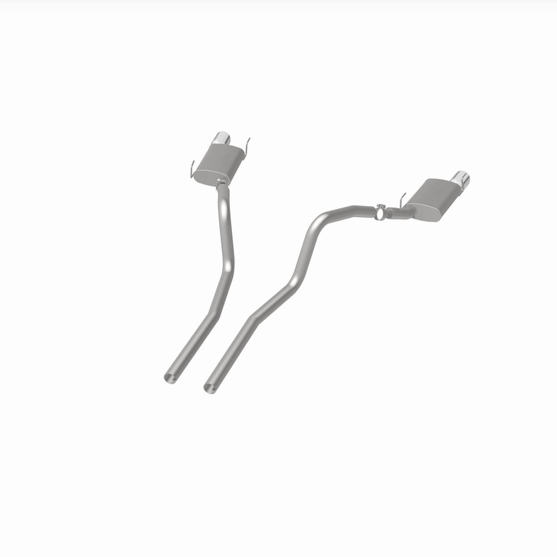 The MagnaFlow 2005-2009 Ford Mustang Street Series Cat-Back Performance Exhaust System 15881 brings out the personality of your 4.6L, 5.4L 2005-2009 Ford Mustang with our signature resonant, powerful engine tone and dyno-proven performance. Thanks to its fast-flowing, mandrel bent 2.5in. main piping and 2 Straight-Through mufflers ending in a Dual Split Rear exit with 4in. Polished Welded-On Double Wall Angle Cut Rolled Edge tips, this Ford Mustang exhaust kit has the performance chops to match its sporty sound and appearance. Upgrade your ride to the next level with an exhaust that has the pipes to put other Ford Mustang’s to shame. With this system your vehicle will be producing Moderate exterior and Mild interior sound levels while leaving other cars and trucks feeling envious at every stoplight. Exhaust kit 15881 features a cat-back layout that replaces your ride’s stock exhaust components from near the catalytic converter on back. Extensive 3D scanning during development has resulted in a direct-fit design that you can easily install yourself. 15881 is produced using CNC precision robotic manufacturing techniques and is backed by MagnaFlow’s 1-year limited finish warranty and limited lifetime construction warranty.