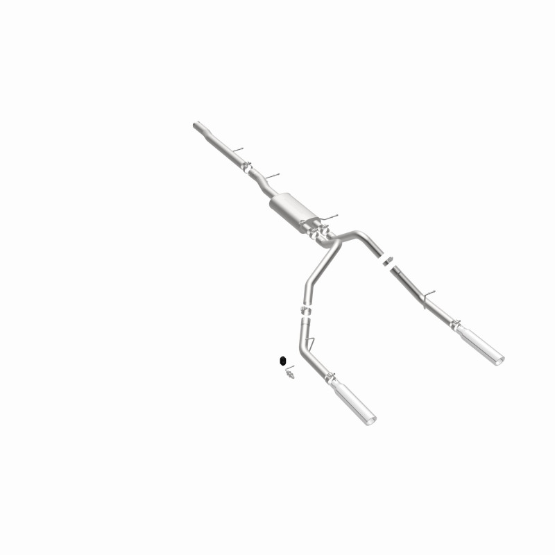 The MagnaFlow Street Series Cat-Back Performance Exhaust System 15565 brings out the personality of your Truck with our signature resonant, powerful engine tone and dyno-proven performance. Thanks to its fast-flowing, mandrel bent 3in. main piping and 1 Straight-Through mufflers ending in a Dual Split Rear exit with 3.5in. Polished Clamp-On Single Wall Angle Cut Rolled Edge tips, this Truck exhaust kit has the performance chops to match its sporty sound and appearance. Upgrade your ride to the next level with an exhaust that has the pipes to put other Truck’s to shame. With this system your vehicle will be producing Aggressive exterior and Moderate interior sound levels while leaving other cars and trucks feeling envious at every stoplight. Exhaust kit 15565 features a cat-back layout that replaces your ride’s stock exhaust components from near the catalytic converter on back. Extensive 3D scanning during development has resulted in a direct-fit design that you can easily install yourself. 15565 is produced using CNC precision robotic manufacturing techniques and is backed by MagnaFlow’s 1-year limited finish warranty and limited lifetime construction warranty.