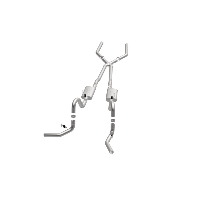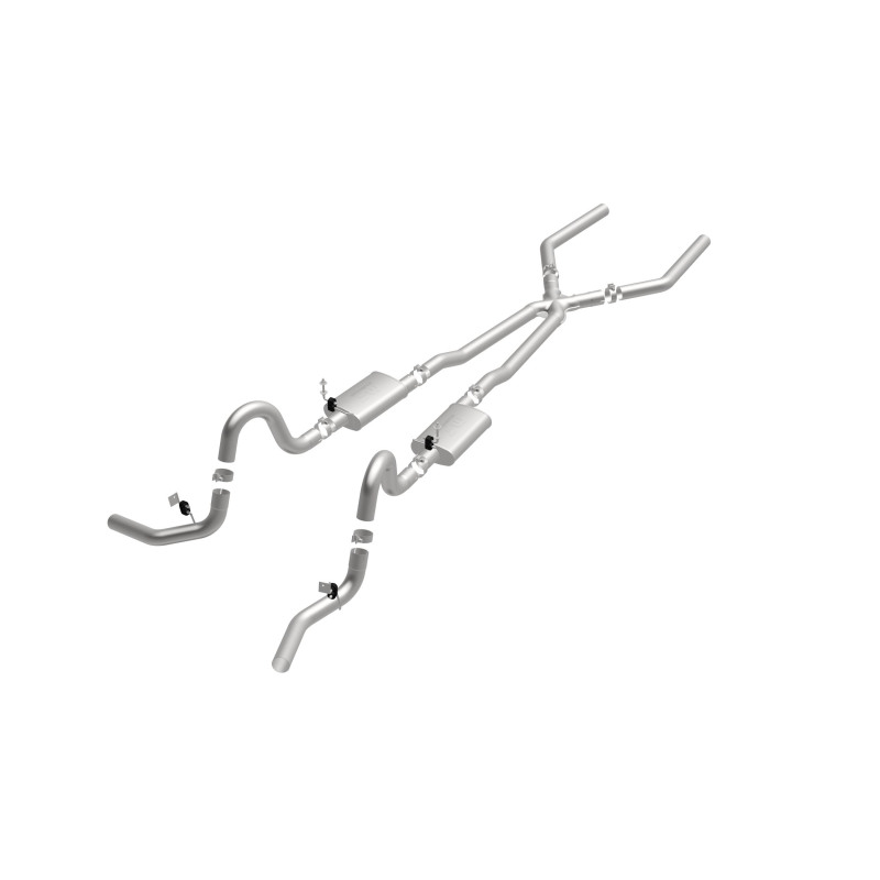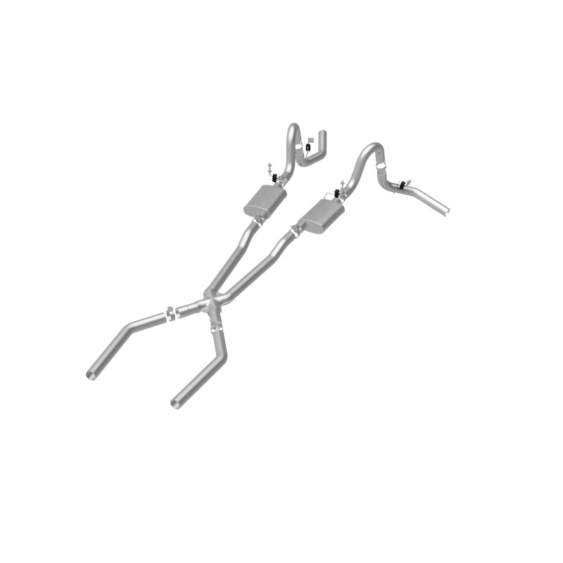 The MagnaFlow Street Series Crossmember-Back Performance Exhaust System 15897 brings enhanced engine sound and dyno-proven performance to your muscle car with a healthy helping of our deep, resonant signature exhaust note at Aggressive exterior and Moderate interior sound levels. Thanks to its durable, corrosion resistant stainless steel design, this exhaust system will handle whatever tarmac you decide to leave your mark on. This performance exhaust kit features a crossmember-back layout designed to replace your exhaust system from the crossmember on back. With its fast-flowing, mandrel bent 3in. main piping and 2 Straight-Through mufflers ending in a Dual Split Rear Behind Rear Tires exit that you can enhance with tips of your choosing, your muscle car will be sounding as awesome as it looks. Extensive 3D scanning during development has resulted in a direct-fit design that you can easily install yourself. 15897 is produced using CNC precision robotic manufacturing techniques and is backed by MagnaFlow’s limited lifetime construction warranty.