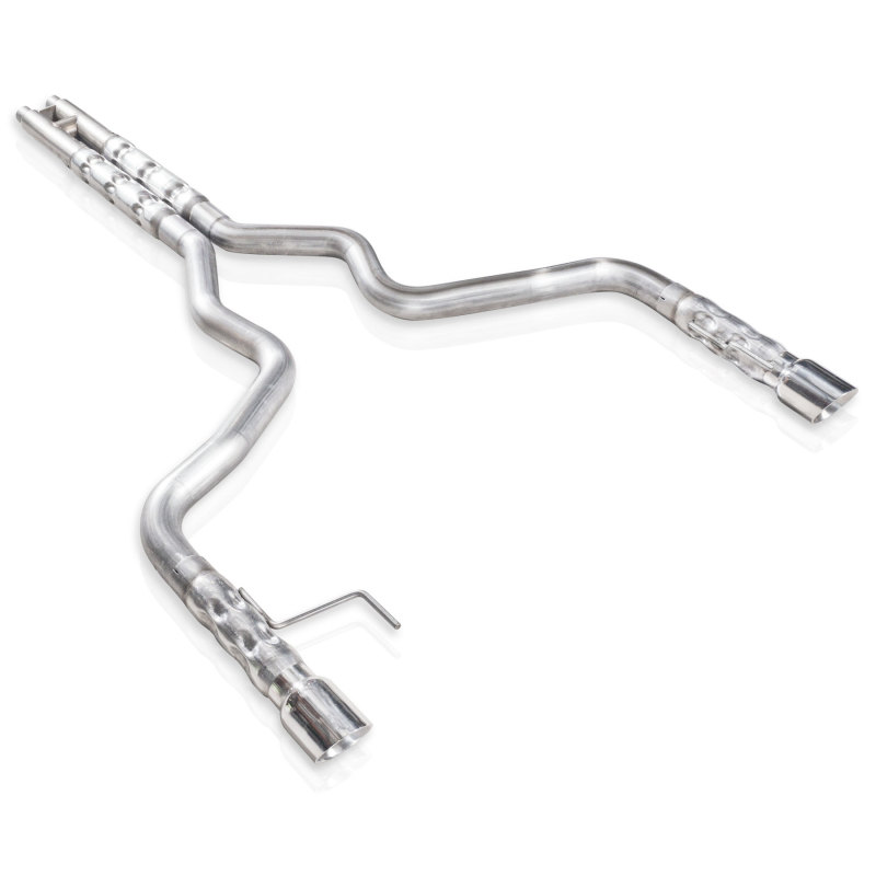 2015-17 Mustang GT 5.0L 304 stainless steel 3″ catback dual-exhaust with H-pipe, retro chambered mufflers with 2.5″ cores and mirror-polished tips. Includes hangers and clamps and is designed to mate to the factory connection point.