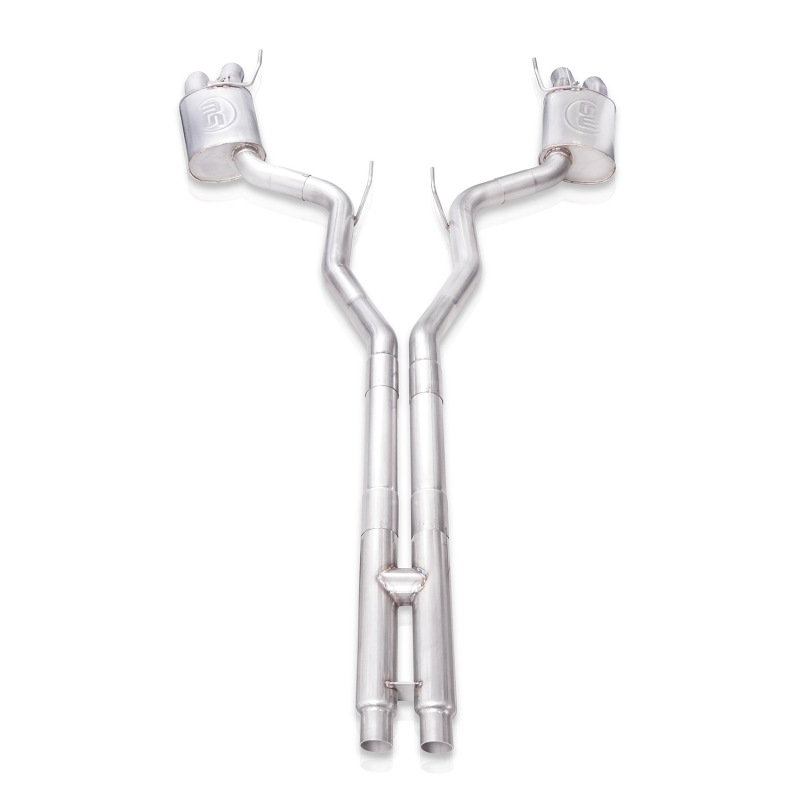 2015-20 Shelby GT350 5.2L, 3″ Dual Exhaust with H-pipe, Legend Catback from Stainless Works. This system features dual-mode mufflers with a 3″ valve assembly. This system is designedfit Factory Connection Point.