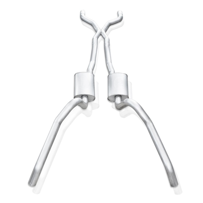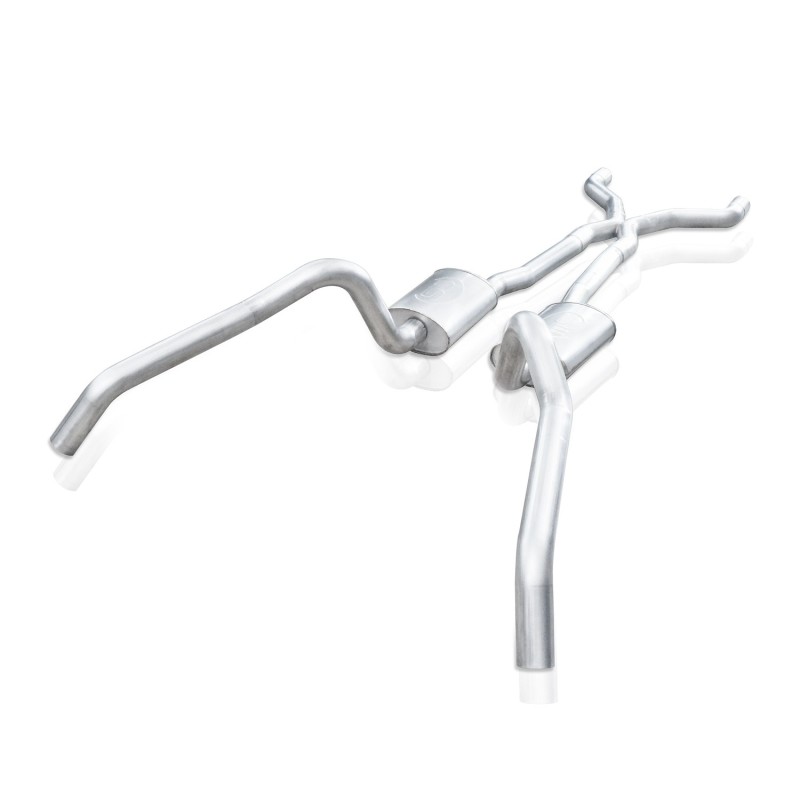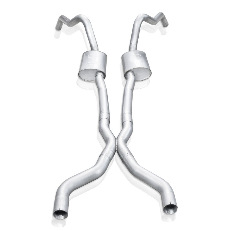 1962-67 Chevy II Nova SBC, Chevy Exhaust, 304 Stainless Steel, CNC mandrel bent tube. 3″ Exhaust system, X-pipe, Dual exhaust, Chambered Turbo mufflers, All TIG welded, Performance connection.