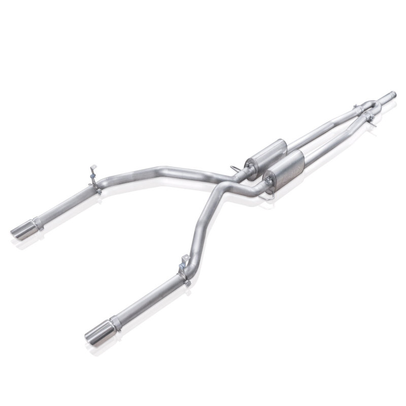 Chevy Silverado / GMC Sierra 2007-16 Exhaust for 1500 2WD/4WD 5.3L Double Cab with Standard Box or Crew Cab with either Short Box or Standard Box. Fits to factory connection point behind factory catalytic converter. Exits under bumper on both sides. Limited Lifetime Warranty: Stainless Works headers and exhausts are designed to take the punishment of your motor, and are backed by a Limited Lifetime Guarantee on material and workmanship.