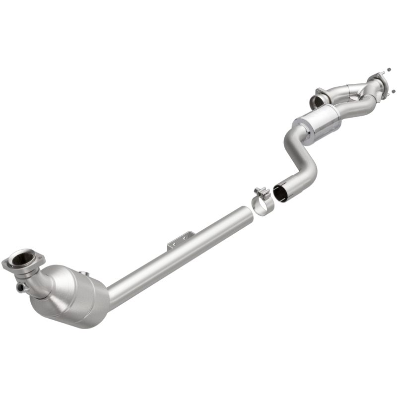 Keep the check engine light off with MagnaFlow HM Grade Federal/EPA Compliant Direct-Fit Catalytic Converter 24264. With features including free-flowing mandrel-bent tubing and highly corrosion resistant stainless steel construction, easily install this spun body converter yourself using the proper tools, no cutting or welding required. MagnaFlow’s state-of-the-art metrology department uses the latest 3D scanning systems during research and development, so you can be confident that your new part will fit and function like the original equipment. By replicating the OE spun body design, the single laser fusion weld greatly reduces the possibility of a leak, and our compact, low-mass design also allows for greater thermal efficiency. Designed to fit the 2006-2007 Mercedes-Benz C230, 2006-2009 Mercedes-Benz CLK350, and more, this direct-fit catalytic converter also interchanges with OE parts 203 490 93 19 and 203 490 14 20 80, among others. Hardware is included to eliminate the hassle of working with corroded factory parts. This replacement part is designed to meet or exceed Federal emissions requirements set forth by the EPA, complying with legal standards for OBDII Federally registered vehicles with Federal/EPA Emission systems.