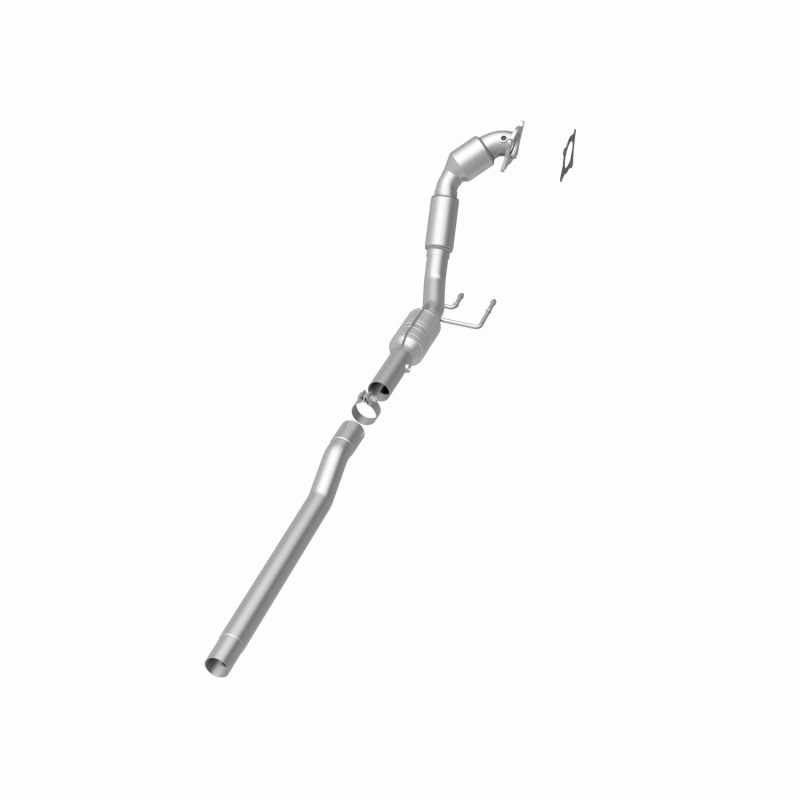 Keep the check engine light off with MagnaFlow OEM Grade Federal/EPA Compliant Direct-Fit Catalytic Converter 51938. With features including free-flowing mandrel-bent tubing and highly corrosion resistant stainless steel construction, easily install this spun body converter yourself using the proper tools, no cutting or welding required. MagnaFlow’s state-of-the-art metrology department uses the latest 3D scanning systems during research and development, so you can be confident that your new part will fit and function like the original equipment. By replicating the OE spun body design, the single laser fusion weld greatly reduces the possibility of a leak, and our compact, low-mass design also allows for greater thermal efficiency. This direct-fit catalytic converter is designed specifically for the 2012-2013 Volkswagen Golf R and interchanges with OE part 1K0 254 513 EX. The included gaskets & hardware reduce the possibility of a leaking seal while avoiding the need to reuse corroded factory parts for installation. This replacement part is designed to meet or exceed Federal emissions requirements set forth by the EPA, complying with legal standards for OBDII Federally registered vehicles with California or Federal/EPA Emission systems.