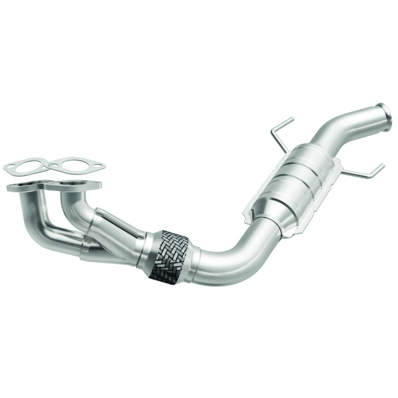 Keep the check engine light off with MagnaFlow HM Grade Federal/EPA Compliant Direct-Fit Catalytic Converter 23687. With features including free-flowing mandrel-bent tubing and highly corrosion resistant stainless steel construction, easily install this spun body converter yourself using the proper tools, no cutting or welding required. MagnaFlow’s state-of-the-art metrology department uses the latest 3D scanning systems during research and development, so you can be confident that your new part will fit and function like the original equipment. By replicating the OE spun body design, the single laser fusion weld greatly reduces the possibility of a leak, and our compact, low-mass design also allows for greater thermal efficiency. This direct-fit catalytic converter is designed specifically for the 1994-1998 Saab 900. Avoid potential exhaust leaks by using the included gaskets to get a proper seal. This replacement part is designed to meet or exceed Federal emissions requirements set forth by the EPA, complying with legal standards for OBDII Federally registered vehicles with Federal/EPA Emission systems.