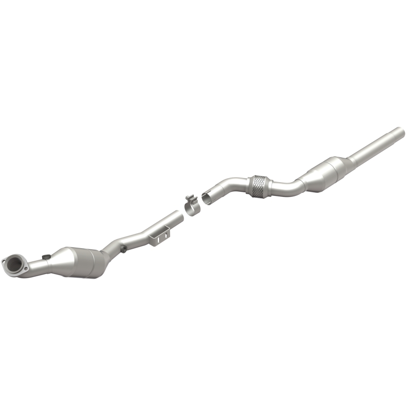 Keep the check engine light off with MagnaFlow HM Grade Federal/EPA Compliant Direct-Fit Catalytic Converter 93289. With features including free-flowing mandrel-bent tubing and highly corrosion resistant stainless steel construction, easily install this converter yourself using the proper tools, no cutting or welding required. MagnaFlow’s state-of-the-art metrology department uses the latest 3D scanning systems during research and development, so you can be confident that your new part will fit and function like the original equipment. By replicating the OE design, the single laser fusion weld greatly reduces the possibility of a leak, and our compact, low-mass design also allows for greater thermal efficiency. MagnaFlow 93289 includes (1) Torca Clamp and interchanges with OE parts 210 490 34 47, 210 490 34 47 27, 210 490 36 47, 210 490 39 19, 210 490 39 19 27, 210 490 80 20, 210 490 94 47, 210 490 94 47 80, 210 490 96 47, 210 490 96 47 80. This replacement part is designed to meet or exceed Federal emissions requirements set forth by the EPA, complying with legal standards for OBDII Federally registered vehicles with Federal/EPA Emission systems.