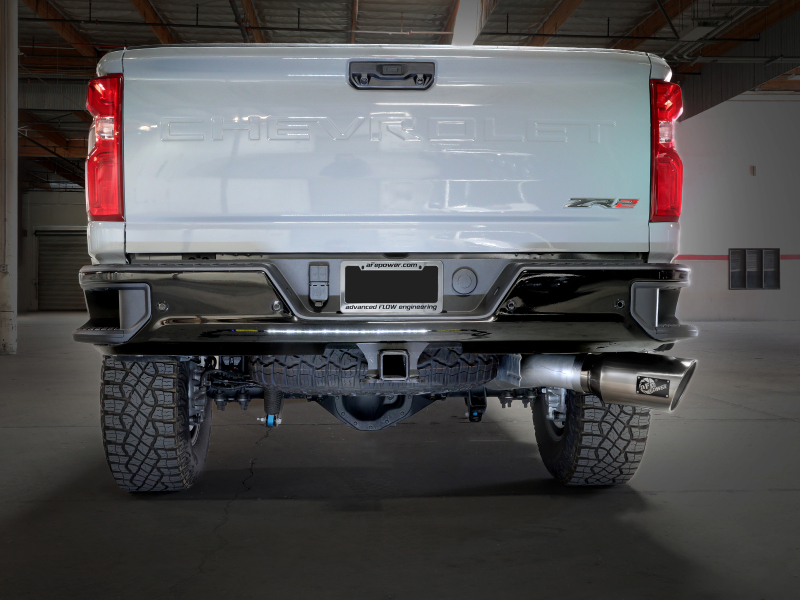 This DPF-Back exhaust system is constructed of 5″ mandrel-bent 409 stainless steel tubing for maximum strength and durability. Finishing off this exhaust system is a 7″ diameter polished 304 stainless steel clamp-on exhaust tip. The tip features an aFe POWER logo plate riveted on for a unique style. Some cutting may be required, see instruction sheet for further information. Utilizing factory style hangers this system mounts directly to factory mounting locations for a hassle-free installation. Utilizing state-of-the-art computer-aided design technology, this exhaust system is designed for custom, high tolerance factory fitment. 100% MIG-Welded for race-proven strength and durability.