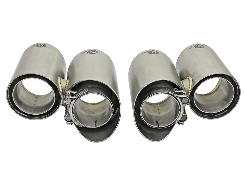 • Quad Brush Finish Tip Assembly w/Laser Etched aFe Power Logo