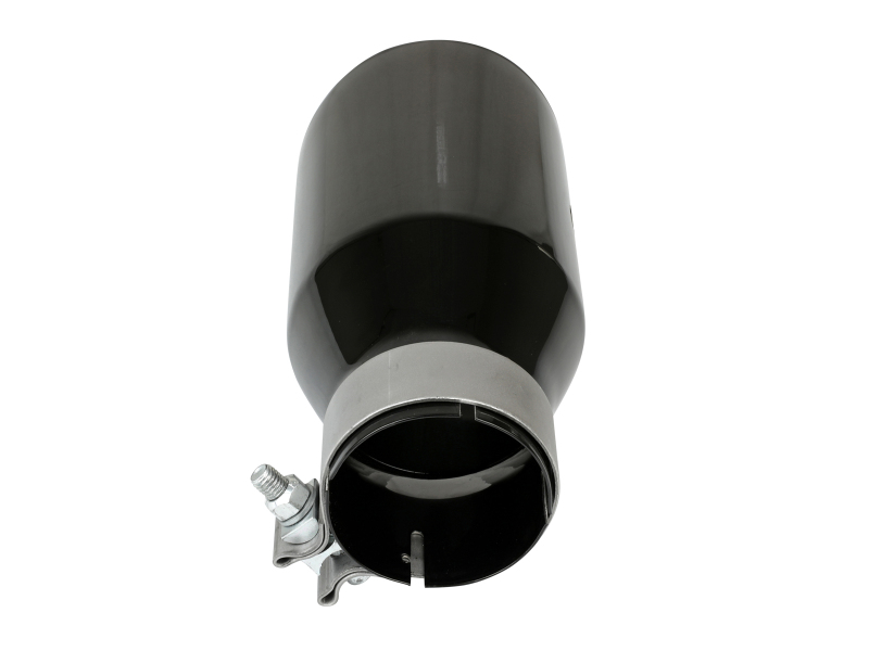 This direct-fit clamp-on tip is constructed from 304 stainless steel and features a black finish for corrosion resistance for long lasting good looks. Designed to fit 3″ exhaust systems; 3″ inlet x 4-1/2″ outlet and 9″ inch length. This tip features a laser etched aFe POWER logo for an aggressive, custom look. A high quality stainless steel clamp is used for a complete 360 degree sealing surface.