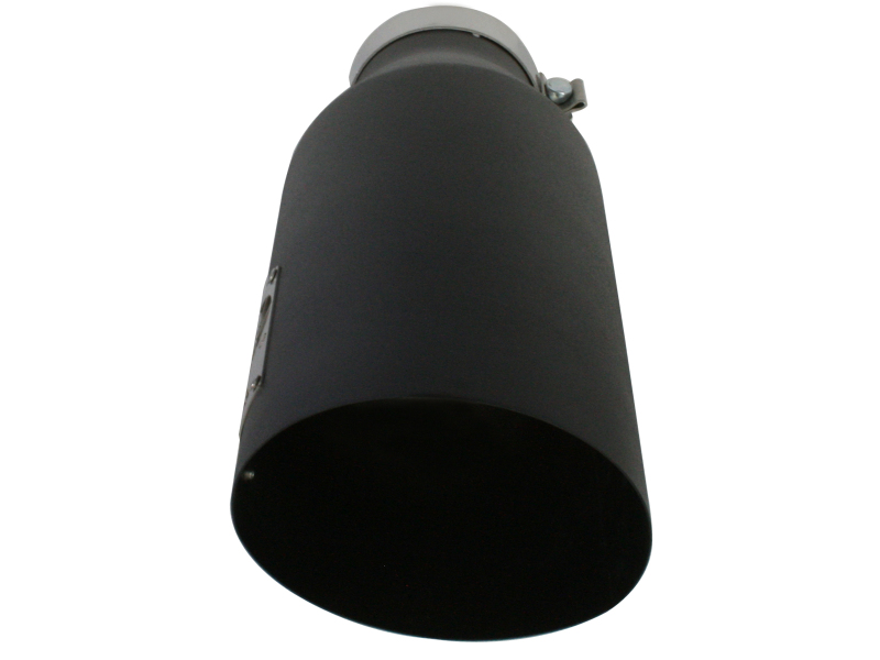 This universal MACH Force-Xp stainless steel tip is designed to fit 4″ exhaust systems. Dimensions are: 4″ inlet x 7″ outlet x 18″ length. This single-walled, angle cut tip is powder coated black and finished with our signature laser-cut aFe Power logo plate for a quality, custom look.