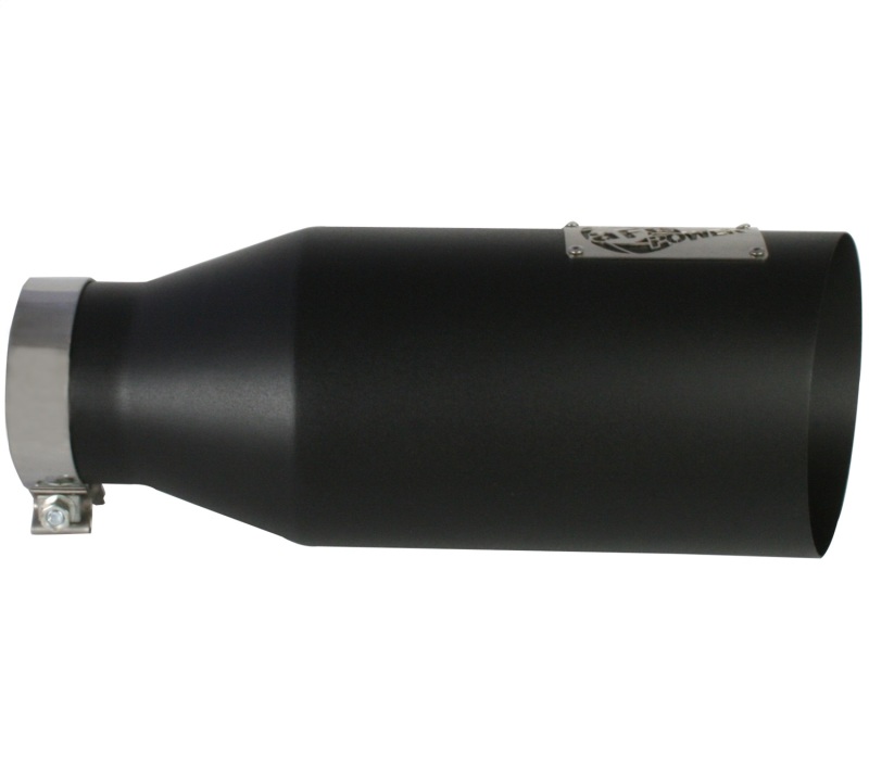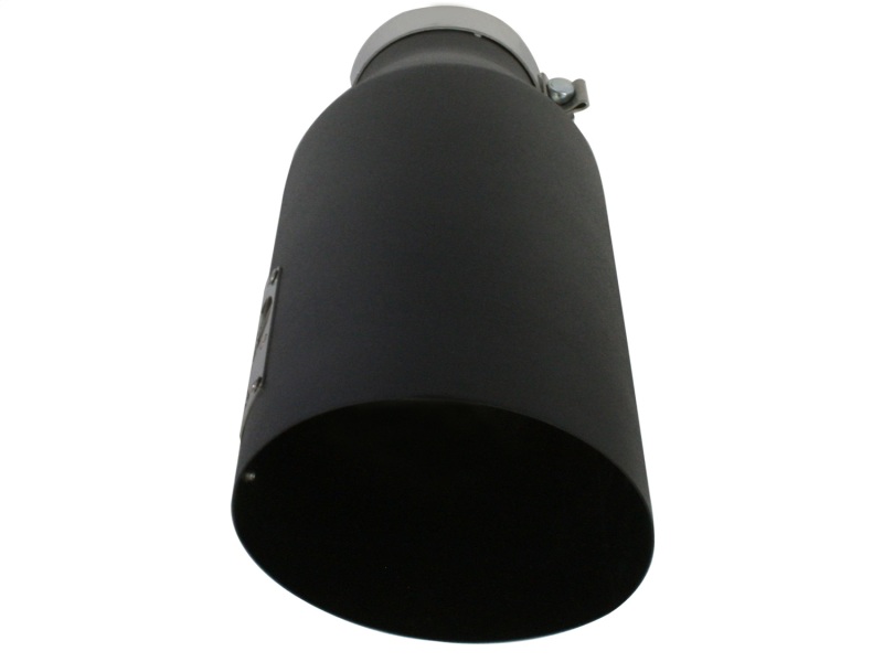The aFe stainless steel wrinkle black powder-coated exhaust tip is designed to fit 4″ exhaust systems. A stainless steel band clamp ensures a very secure grip. Finally, this exhaust tip features a stainless steel laser-cut logo plate that stands out against the black tip for an aggressive style. With a 4″ inlet, 7″ outlet and a massive 18″ inch length, this single-walled, slash cut tip is a nice compliment for any 4″ exhaust system.
