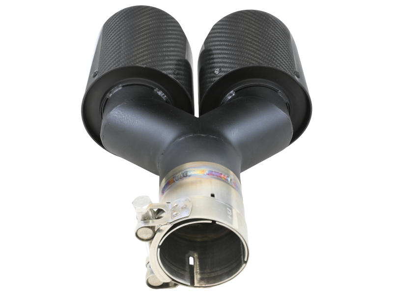 Upgrade your exhaust with a Takeda 2-1/2″ universal, carbon fiber clamp-on tip. Designed to accommodate 2-1/2″ exhaust systems, this dual wall, carbon fiber, stainless steel tip bolts on easily with a quality barrel clamp. No cutting or welding required. The Takeda universal clamp-on tip features a carbon fiber outer wall and 304 stainless-steel inner wall for heat and corrosion resistance. This tip is designed with slotted air vents to reduce surface heat. This allows hot exhaust to dissipate keeping the carbon fiber surface cooler. The tip fits right up to 2-1/2″ exhaust tubing with a quality stainless steel barrel clamp, for a complete 360-degree sealing surface. No cutting or welding is required making it easy to install. Designed to fit 2-1/2″ exhaust systems; 2-1/2″ inlet x dual staggered 4″ outlet and 12″ inch length. Left side applications.