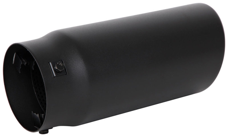 Spectre bolt-on universal exhaust tips are a great cosmetic add on for your exhaust system. Our universal stainless steel exhaust tips feature a black textured powdercoat finish for long lasting looks. The interior is resonated to further enhance the exhaust note. This exhaust tip is designed to fit 2.75 inch to 3.75 inch exhaust tubing and is held in place by the 3 mounting screws or can be tack welded. This exhaust tip also features an aggressive slant cut design with a 4.5 inch outside diameter body.