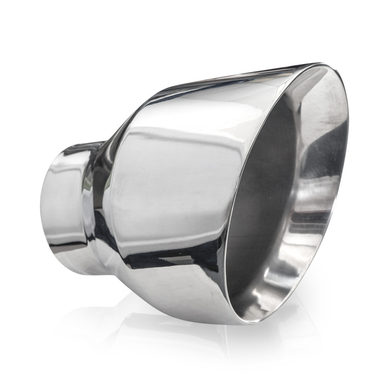 Polished double wall tip, made of 304 stainless steel, Conical slash cut tip. 5″ OD body with a 4″ ID thru, 3″ ID inlet with a 1-1/4″ stub and a overall length of 6-1/4″.