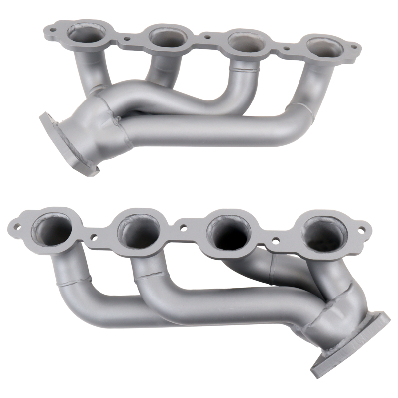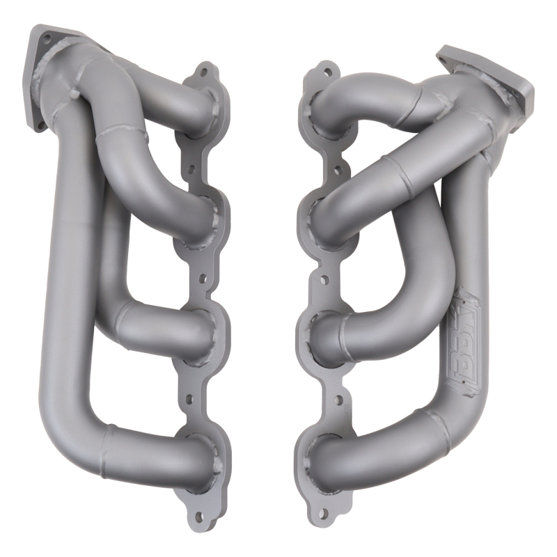 These BBK Performance shorty tuned Length exhaust Headers are designed and constructed as direct fit replacements for all 14-18 Chevrolet GM 5.3 6.2 Full Size Truck applications. Each header is manufactured with 1-3/4 in. CNC mandrel bent tubing that offers unrestricted exhaust flow for increased horsepower and torque over factory OEM manifolds. BBK tuned Length headers offer improved scavenging waves for better combustion, which leads to improved performance and fuel economy over stock or equal Length headers. As with all BBK Performance exhaust headers they feature a 3/8 in. laser cut flange for additional strength and a guaranteed leak free fit. All headers are robotically and precision hand welded and then pressure tested to ensure years of reliability and performance in the real world. All BBK exhaust headers are available in a titanium ceramic or polished silver ceramic coated finish and include new exhaust header gaskets, header bolts and hardware to complete the installation.