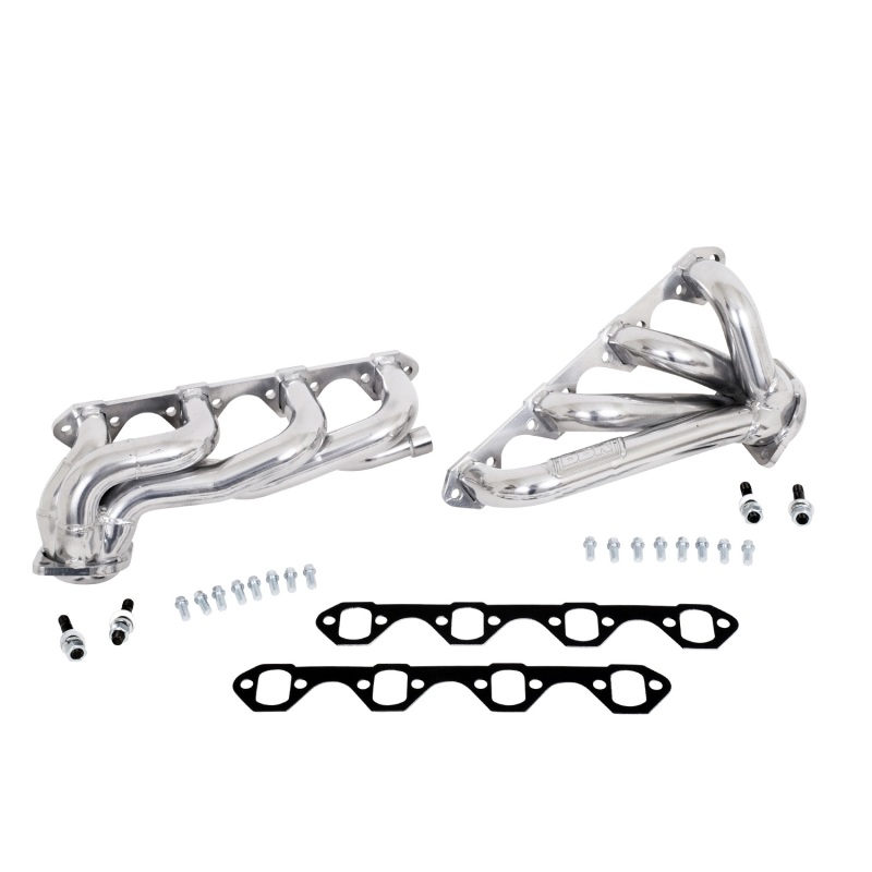 These BBK Performance shorty unequal Length exhaust Headers are designed and constructed with 1-5/8 in. CNC mandrel bent tubing that offers unrestricted exhaust flow for increased horsepower and torque over factory OEM manifolds. As with all BBK Performance exhaust headers they feature a 3/8 in. laser cut header flange for additional strength and a guaranteed leak free fit. All headers are robotically and precision hand welded and then pressure tested to ensure years of reliability and performance in the real world. All BBK exhaust headers are available in titanium ceramic or polished silver ceramic coated finish and include new exhaust header gaskets, header bolts and hardware to complete the installation. 50 State Legal – CARB Approved.