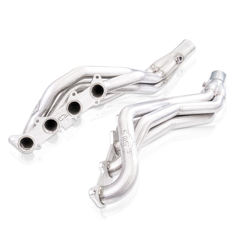 2015-20 Ford F-150, 304 stainless steel, 3/8″ thick flange, CNC mandrel bent 1-7/8″ primaries into a 3″ Slip-fit collector. Catted leads, comes with X-pipe and is a performance connect to our SW catbacks.