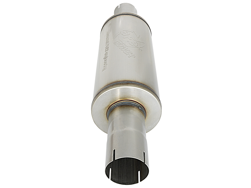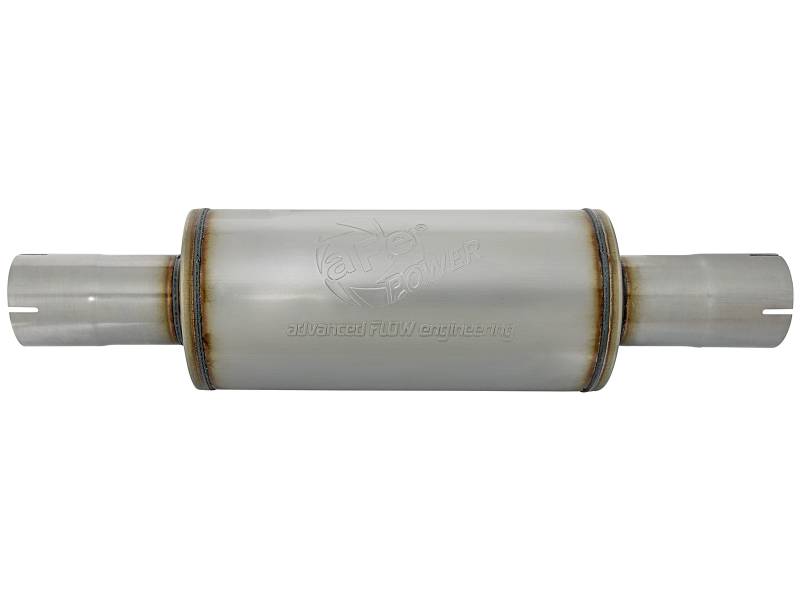 The aFe Universal fit Aluminized Steel Performance Muffler is designed to provide a deep, throaty, powerful sound on acceleration, but maintain a smooth sound at idle. This muffler is constructed of brushed finished aluminized steel and uses a straight through perforated core with heat resistant packing to reduce backpressure and maximize exhaust flow. You will see increased performance and improved throttle response over the factory exhaust. Also featuring a stamped aFe Power logo for an aggressive style. Muffler Specifications: 3-1/2″ Center Inlet /Outlet, 16″ L Body Diameter. All aFe exhaust systems are engineered and manufactured in our Corona, California manufacturing facility.